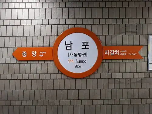 Nampo Station (a.k.a. Nampodong Station) is a station of Busan Metro Line 1 in Nampo-dong, Jung District, Busan, South Korea.