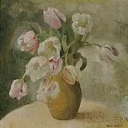 Nan Watson (1876–1966) was an American artist known for the flower paintings, portraits, and still lifes she made during the 1920s and 1930s. Showing frequently in group and solo exhibitions, she received praise for both the aesthetic and technical qualities of her work. Critics described her paintings as sincere, forthright, and direct and said they demonstrated good draftsmanship, harmonious composition, and fresh color values. In 1929, the art historian Lloyd Goodrich said, "One knows no other painter of flowers who captures so completely their delicate life without becoming in the least sentimental about it or lapsing into merely technical fireworks."[1] In 1932, Edward Alden Jewell, the principal critic for the New York Times published a lengthy critique of one of her shows. In it, he wrote, "The field is thronged with artists who paint flowers; many of these artists are highly successful, though few are seen to arrive at the goal of superlative distinction. Among those who do attain this coveted goal, Nan Watson must certainly be numbered."[2] At the same time, Margaret Breuning of the Evening Post wrote concerning the flower paintings, "It is the ability of the artist to give lyric transcription of natural forms in terms of design which imbues these canvases with their significance." Concerning Watson's portraits, Breuning noted a "surety of draftsmanship" and Watson's "fine perception that pierces to the essentials".[3] Similarly, an unsigned review of 1928 said Watson succeeded in producing a "candor, directness, [and] fidelity to personal conceptions that one finds delightful in a world where there much conformity to standards of aesthetic performance from which the timid or the conventional may not deviate." This critic concluded, "Not only sensitive perception and technical skill are to be enjoyed in this engaging exhibition, but the revelation of personality that has gone into the making of each canvas."[4]
