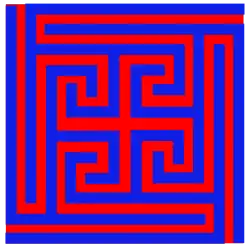 The Nandavarta or Nandyavarta is one of the eight auspicious symbols of Jainism for the Śvetāmbara sect.[1] It is an ashtamangala which is used for worship, and could be made with rice grains.[2] It is also the symbol of 18th tirthankara Aranatha according to Śvetāmbara tradition and 7th tirthankara Suparshvanatha according to the Digambara tradition.[3] The symbol has 4 arms with compulsorily 9 corners/ turns each.