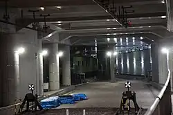 The Naniwasuji Line (なにわ筋線, Naniwasuji-sen) is an underground heavy rail line scheduled to open in spring 2031, which will run north-south through central Osaka, primarily under the avenue Naniwasuji.[1] It has long been pursued by West Japan Railway Company (JR West) and Nankai Railway in order to connect the JR Yamatoji Line (Kansai Main Line) and Nankai Main Line with Shin-Osaka Station, greatly enhancing both companies' connections to Kansai International Airport and Wakayama Prefecture.[2] As of 18 March 2023, the tracks through the northern terminus at Osaka Station and adjoining underground platforms were opened for the Haruka, Kuroshio, Mahoroba and Rakuraku Yamato limited express services as well as ordinary trains on the Osaka Higashi Line.[3]
