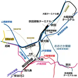 - ^ Kamiyama, Junichi (23 October 2016). "なにわ筋・新大阪連絡線、実現へ一歩 阪急などが協議へ" [Naniwasuji-Shin-Osaka connecting line, one step towards realization Hankyu and others to discuss]. Asahi Shimbun DIGITAL (in Japanese). Archived from the original on 15 November 2019. Retrieved 12 December 2022.