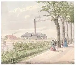 A couple of industrial buildings were older than the street. The Elisabethsminde chocolate factory was situated in the area between Nansensgade and the Peblinge Lake. It later relocated to Heimdalsgade in Nørrebro in 1914.[3][4]
