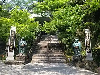 Nanzo-in was originally located on Mount Kōya, but local anti-Buddhist authorities threatened to destroy the temple in 1886.[1] Public outcry lead to a decade-long effort to have the temple transferred to Sasaguri.[2] It was moved in 1899, under the leadership of Sasaguri priest, Hayashi Satoshiun.[3] Nanzo-in is the main location among the 88 temples that make up the Sasaguri pilgrimage route, one of the three famous walking pilgrimages in Japan.[4][5]