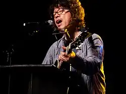 Urasawa wrote and performed the song "Bob Lennon (Kenji no Uta)" (Bob Lennon (ケンヂの歌)), which was released on a CD included in the 2002 first pressing of volume 11 of 20th Century Boys.[72] He released the limited single "Tsuki ga Tottemo..." (月がとっても…) on June 4, 2008,[72] and his debut album Hanseiki no Otoko (半世紀の男; 'Half Century Man') on November 29, 2008.[73] Both were produced by Koji Wakui, while the album features Hiroyuki Namba and other musicians.[5] A single featuring a remix of T. Rex's "20th Century Boy" and Urasawa's "Bob Lennon (Kenji no Uta)" was released on August 19, 2009.[74] Urasawa and Mitsuru Kuramoto wrote and performed "Nigero" (逃げろ) under the name Urasawa ni Mitsuru (浦沢に美津留) to be the theme of the 2011 NTT Docomo TV show Tsubuyaki Sanshirō ~Ippon Nau!~.[75][76] In 2012 he performed a Japanese cover of Bob Dylan's "Girl from the North Country" and "Guta Lala Suda Lala" from his series 20th Century Boys at the Japan Expo, and the following day he joined rock band Hemenway on stage.[18]