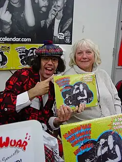 Nardwuar the Human Serviette[3][2] (born John Andrew Vernon Ruskin, July 5, 1968),[4] or simply Nardwuar, is a Canadian celebrity journalist and musician.[5] He formed the Vancouver-based garage rock band the Evaporators in 1986, for which he serves as lead singer and keyboardist.[6] He is best known for his in-depth interviews with musicians, celebrities, and politicians, where his thorough research and extensive knowledge often surprise them—uncovering forgotten details or well-kept secrets they never expected anyone to know.