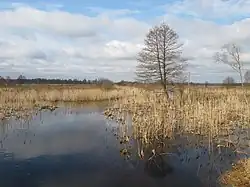 The Narew ([ˈnarɛf]; Belarusian: Нараў, romanized: Naraŭ; Lithuanian: Narevas or Naruva) is a 499-kilometre (310 mi) river primarily in north-eastern Poland. It is a tributary of the river Vistula. The Narew is one of Europe's few braided rivers, the term relating to the twisted channels resembling braided hair. Around 57 kilometres (35 mi) of the river flows through western Belarus.