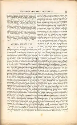 - ^ Sanborn, Geoffrey. "A confused beginning: The Narrative of Arthur Gordon Pym, of Nantucket", as collected in The Cambridge Companion to Edgar Allan Poe, edited by Kevin J. Hayes. New York: Cambridge University Press, 2002: 171. ISBN 0-521-79727-6