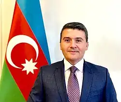 Nasimi Aghayev (Azerbaijani: Nəsimi Məhəmmədəli oğlu Ağayev) is the Azerbaijani ambassador to Germany[1] and the former Consul General of Azerbaijan in Los Angeles (2012-2022).[2] Before that, he served at the Embassy of Azerbaijan in Washington, D.C. as a counselor for political and public affairs (2010-2012). He joined Azerbaijan's diplomatic service in 1999 and also served at the country's Embassies in Austria (2000–03) and Germany (2005–08), as well as in the Ministry of Foreign Affairs in Baku.