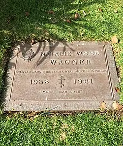 Wood was buried in Westwood Village Memorial Park Cemetery in Los Angeles. Representatives of international media, photographers, and members of the public tried to attend her funeral, but all were required to remain outside the cemetery walls. Among the celebrities were Frank Sinatra, Elizabeth Taylor, Fred Astaire, Rock Hudson, David Niven, Gregory Peck, Gene Kelly, Elia Kazan, and Laurence Olivier.[99] Olivier flew in from London in order to attend the service.[100]