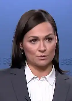 In 2014, Natallia Eismant was appointed press secretary of the President Alexander Lukashenko.[2] Circumstances of her promotion are unknown. One source claimed that she was introduced to Lukashenko by the beauty queen Daria Shmanai, who accompanied the president.[3] Fashion designer Sasha Varlamov claimed that the sister-in-law Anna Eismant introduced Natallia to Lukashenko.[4] In 2018, her husband Ivan Eismant was appointed the head of the National State Television and Radio Company.[1]