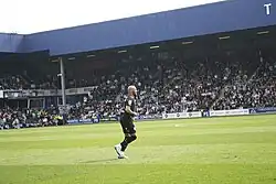 Redmond's first league goal came in a 3–0 win at home to Blackpool on 31 December 2011 as he "smashed an unstoppable shot from just outside the penalty area that beat Howard at his near post".[26] His second, "thumped in ... from 12 yards in stoppage time" completed a 6–0 win away against a nine-man Millwall team.[27] Redmond opened the scoring with a shot from the edge of the penalty area as Birmingham went on to beat Sheffield United 4–0 to progress to the fifth round of the 2011–12 FA Cup,[28] and came off the bench to score a "stunning" 86th-minute swivelled volley to give Birmingham a 1–0 win against Portsmouth that took them to third place in the table.[29] He finished the season with seven goals from 37 appearances in all competitions, and won the club's Young Player of the Year award.[24]