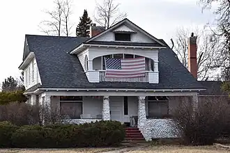 The Nathan Smith House in Boise, Idaho, is a 1+12-story Colonial Revival farmhouse designed by John E. Tourtellotte and constructed in 1900. The house features a veneer of cobblestones from the Boise River below shingled upper gables and hooded dimple windows, but its most prominent design element is a front facing basket arch balcony above the porch. The overall design is an early example of a Bungalow, and it influenced later designs in Boise. The house was added to the National Register of Historic Places in 1983.[2]