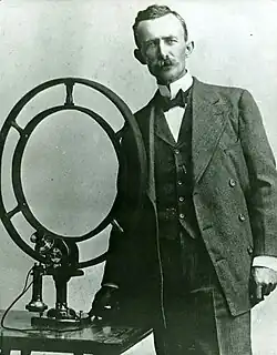 ![]() Stubblefield (1908) with his later, induction, wireless telephone | |