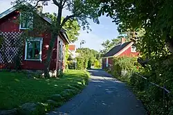 The island is a gated community that is connected to the mainland by a private bridge. However, there is a parking lot by the gate, which can be accessed by pedestrians. There is also a public bus route to the island (route 163). Attractions on the island include Sandbukta ("sand bay"), which is a beach on its eastern side. It is also a common destination for recreational activities such as camping, paddling, sea trout fishing, hiking, and sailing. It has surrounding views of the Tønsbergfjord and the nearby Stauper islands. A former customs station on the island, known as Blåsen, has also become a landmark.[1] The island hosts annual summer camps for the Queer Youth Festival and the YWCA-YMCA Guides and Scouts of Norway.[9]