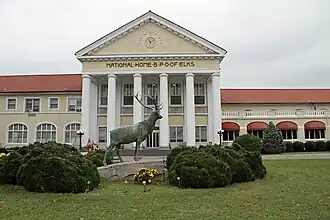 The Elks National Home was built in 1916 by the Benevolent and Protective Order of Elks, who first started the home in 1903. The Elks National Home historic district includes twenty-three contributing buildings, three contributing sites, a contributing structure, and two contributing objects.[3]