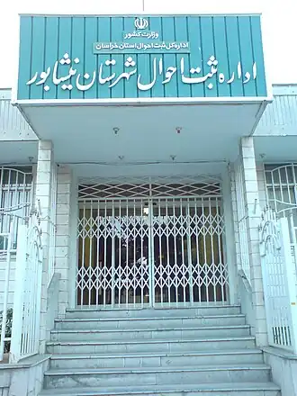National Organization for Civil Registration of Iran is one of the governmental organizations in Iran that is responsible for collecting information and population statistics of Iran. This organization is one of the subordinate institutions of the Ministry of Interior of Iran. The organization is responsible for providing basic registration information such as births, deaths and marriages, as well as issuing identity documents such as birth certificates and Identity certificate. The current head of the organization is Hashem Kargar.[1][2][3] In Iran, the third day of Dey (month) (23 or 24 December) has been named as National Organization for Civil Registration Day.[4][5]
