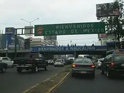 Several major roadways pass through the city and municipality, which connect the Mexico City area to parts north and west, as well as other parts of the metropolitan area. The northern section of the Anillo Periférico passes through Ciudad Satélite. There have been plans to add a second level to this roadway, but local residents have been working against it. One of the concerns is that the new roadway will damage the nearby Torres de Satélite.[14] The recently built Viaducto Bicentenario highway, linking Mexico City with western Mexico State passes through Naucalpan and was the first section to begin operations. This section connects the Lomas Verdes section with Cuatro Caminos at the border of Mexico City.[15] The construction of these roadways is projected to make changes in the urban landscape of the city, attracting projects such as office buildings and commercial centers. A number of projects are already in the works. The goal is to build areas here similar to Santa Fe and Interlomas.[16] Naucalpan is strongly dependent on cars and other motorized transportation. Efforts have been made to promote bicycle use such as bike paths and free bicycle loans, but they have not been successful.[17]