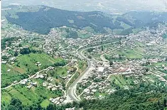 The name Naucalpan comes from Nahuatl and means "place of the four neighborhoods" or "four houses." Juárez was added to the official name in 1874 in honor of Benito Juárez.[3] The history of the area begins with the Tlatilica who settled on the edges of the Hondo River between 1700 and 600 B.C.E., but it was the Mexica who gave it its current name when they dominated it from the 15th century until the Spanish conquest of the Mexica Empire. Naucalpan claims to be the area where Hernán Cortés rested on the "Noche Triste" as they fled Tenochtitlan in 1520, but this is disputed.[4] It is the home of the Virgin of Los Remedios, a small image of the Virgin Mary which is strongly associated with the Conquest and is said to have been left here.[5]