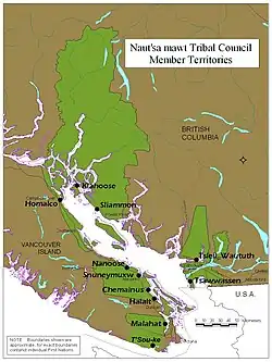 - ^ "Klahowya - Welcome to Klahowya - the voice of the member nations of the Nautʼsa mawt Tribal Council". Archived from the original on 2013-02-17. Retrieved 2012-12-13.