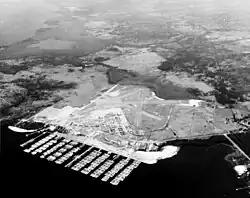 Naval Air Station Lee Field was a United States Navy air base that opened on September 11, 1940, in Green Cove Springs, Florida to support the World War II efforts. The Air Station was on the St. Johns River in Clay County, Florida. The Air Station and Navy base was on 1,560 acres. The US Navy and United States Marine Corps used the site to train pilots on four 5,000-foot (1,500 m) asphalt runways. The Grumman F6F Hellcat fighter plane was the most common plane use at the Navy Air Station. The Vought F4U Corsair was a common plane for the Marine Corps training. The base was named after Ensign Bejamin Lee, who was killed during World War I in a plane crash at Killinghome, England. Naval Air Station Lee Field was renamed Naval Air Station Green Cove Springs in August 1943. After the war, Naval Air Station Green Cove Springs was reorganized into a Naval Auxiliary Air Station (NAAS) of Naval Air Station Jacksonville. The Naval Auxiliary Air Station closed in June 1962.[1][2][3][4]