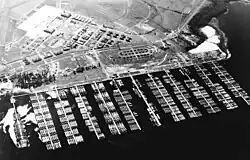 In 1946 the Atlantic Reserve Fleet, Florida, also called the Atlantic Reserve Fleet, Green Cove Springs opened next to the Naval Air Station Green Cove Springs in the St. Johns River. The Atlantic Reserve Fleet, Florida was part of the United States Navy reserve fleets, also called mothball fleet, was used to store the now many surplus ships after World War II. The freshwater was good for long-term storage for ships. At its peak the reserve fleet had 600 ships. In the fleet were destroyers, destroyer escorts, troop ships and US Navy auxiliary ships. Some ships in the fleet were reactivated for the Korean War and Vietnam War.[5][6] The reserve fleet and Air Station were closed in June 1962. The land was deeded to the City of Green Cove Springs. In 1965, the site was sold to J. Louis Reynolds. The site today is the Clay County Port and Reynolds Industrial Park.[7] One runway remains as the Reynolds Airpark Airport (FL60).[8] Some of the former airfield land was used as a test track for anti-lock brakes by Kelsey-Hayes/TRW Automotive. At the site is the original Naval Air Station Lee Field air traffic control tower and aircraft hangars.[9][10][11][12]