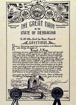 - ^ Cooper, Harold. "The Great Nebraska Navy: Its Origin and Growth" (PDF). Nebraska State Historical Society. Archived from the original on March 29, 2016. Retrieved October 5, 2017.