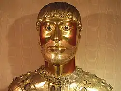 Statue of Saint Nectarius in the church of St. Nectarius, town of Saint-Nectaire, France. | |