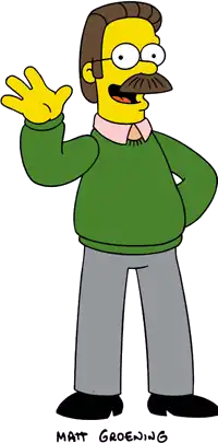 Nedward "Ned" Flanders Jr.,[1] commonly referred to by his surname, is a fictional character in the animated television series The Simpsons, voiced by Harry Shearer[2] and first appearing in the series premiere episode "Simpsons Roasting on an Open Fire." He is the good-natured, cheery next-door neighbor to the Simpson family and is generally loathed by Homer Simpson, though there are numerous instances where the two are portrayed as good friends. A scrupulous and devout Evangelical Christian, he is among the friendliest and most compassionate of Springfield's residents and is generally considered a pillar of the Springfield community.