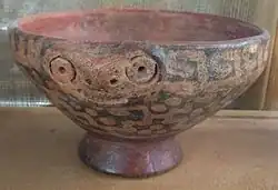 Negative painting (or lost color[1]) is a painting technique where the background is painted dark, allowing the lighter color to appear as the design. There have been at least four methods proposed as to how negative painting was done.[2] It is widely found on painted pottery, but it is speculated that “the first objects with negative painting may not have been pottery, but rather textiles or gourds.”[3]