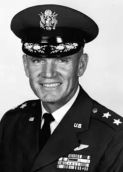 In December 1940 he was transferred to the Army Air Corps after completing flying school at Kelly Field, Texas.[2] He served with the Army Air Forces Antisubmarine Command in the North Atlantic area early in World War II as a squadron commander and in various staff positions. In 1944 he served on the staff of the 73rd Wing on Saipan and flew 16 combat missions against Japan. At the end of the war he was deputy commander of the 497th Bombardment Group.