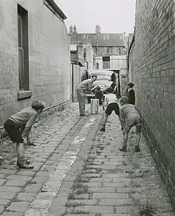 Harvey was the fifth of six boys born to Horace Harvey. Despite his small build, Harvey was born large, weighing in at 4.5 kilograms (10 lb).[1] The family lived in Broken Hill, where Horace was a miner, before moving to Sydney, and finally to Melbourne in 1926, where they settled in the inner northern industrial suburb of Fitzroy. There the six boys were taught cricket under the guidance of their father. In conditions conducive to producing batsmen rather than bowlers, they played cricket using a tennis ball on cobblestones or a marble rebounding from the backyard pavement. The boys went to George Street State School and Falconer Street Central School.[2][3] Cricket and cricket talk was an integral part of the daily family life. Horace held the family batting record with 198 for Broken Hill, and continued to play in Melbourne club cricket. Harvey's eldest brother Merv went on to play one Test for Australia, while Mick and Ray both played for Victoria. All six brothers, the other two being Brian and Harold, also played for Fitzroy in district cricket. Except for Harold, all five represented Victoria in baseball.[2][4]