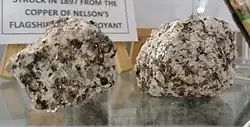 On 21 October 1805, a Royal Navy fleet commanded by Vice-Admiral Lord Nelson defeated a combined fleet of the French and Spanish navies at the Battle of Trafalgar. At the height of the battle Nelson was mortally wounded on board his flagship, HMS Victory; by the time he died later that day, victory was assured.[9]