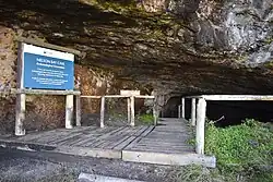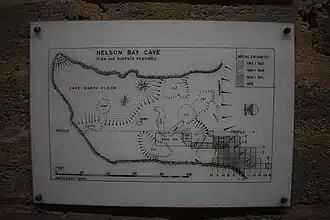 Nelson Bay Cave, previously known as Wagenaar's Cave, is a coastal archaeological site in the Robberg Nature Reserve on the Robberg Peninsula in Plettenberg Bay, South Africa, about 250 km east of Cape Town.[1][2] The cave is 18 meters (59 ft) wide and 35 meters (115 ft) deep, and the cave opening is 21 meters (68 ft) above mean sea level. The cave was amongst the first sites excavated in the southern Cape aimed at recording changes in terrestrial fauna caused by changes in climate and sea levels.[3][4] It documents environmental changes during glacial and interglacial periods.[5] Additionally, the cave is recognized for its Stone Age artifacts that show the transition from Middle Stone Age (MSA) to Later Stone Age (LSA) technologies. It has been regarded as a type-site (site where a particular industry, period, or any significant evidence was first studied in detail and can be used as a standard to be referenced by other sites) of the Robberg Later Stone Age Industry.[1][2][6][7]