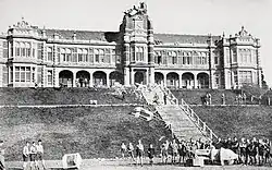 On 7 December 1904, the college was almost completely destroyed by fire. The main building, designed by William Beatson, was said to be a "miniature of Eton," the architect being an old Etonian.[7] In 1926, Nelson College was invited to join the annual rugby tournament between Christ's College, Wanganui Collegiate School and Wellington College, known as the "Quadrangular".[5] In the 1929 Murchison earthquake, the main building of the college was once again severely damaged, although only two boys were injured.[5]