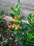 Nematanthus gregarius, also called the clog plant[2] or goldfish plant,[3] is a species of flowering plant from Brazil in the gesneriad family, Gesneriaceae, making it a relative of such genera as Streptocarpus (African violets) and Aeschynanthus (lipstick plants).