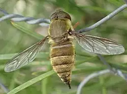 Nemestrinoidea is a small, monophyletic superfamily of flies, whose relationship to the other Brachycera is uncertain; they are sometimes grouped with the Tabanomorpha rather than the Asilomorpha. They are presently considered to be the sister taxon to the Asiloidea. The group contains two very small extant families, the Acroceridae and Nemestrinidae, both of which occur worldwide but contain only small numbers of rare species. One extinct family, Rhagionemestriidae, is also included in Nemestrinoidea.[1]