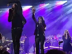 In 2003, she took the stage during the Howard Jones 20th Anniversary concert at the Shepherd's Bush Empire in London to sing "99 Luftballons", with both German and English lyrics. In 2004, Nena went on stage at the Mayday Music Festival in Dortmund, accompanied by the techno duo Toktok. She sang the song "Bang Bang", and was later joined on stage by DJ Westbam to perform "Oldschool Baby". In March 2015, Nena promoted the release of the Oldschool album with a "club tour" of 16 smaller venues (for 200 to 700 people) including her former primary school.[33] A recording of one of these concerts – at the SO36 club in Berlin on 4 March 2015 – was released as Nena's sixth live album Live at SO36 on 4 March 2016, exactly one year later.[34] Later in 2015, Nena announced her intention to perform live in the US for the first time by way of a similar "club tour", which was initially planned for early 2016 before taking place as a three-date "mini tour" in September and October.[35][36][37][38] During this tour, Nena met Dave Stewart with whom she collaborated to release in March 2018 the single "Be my rebel", the video for which went on to win 40 international awards.[39][40]