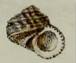 (Original description in Latin) The depressed-turbinate shell is solid and narrowly umbilicate. It is encircled by numerous ridges, with larger ones at the periphery. The surface is closely striated longitudinally. It is whitish, and adorned with pale tawny streaks and spots. It features 4 convex whorls, angular above, with the body whorl having a slightly convex base. The umbilicus is bordered by a crenulated cord. The circular aperture is accompanied by a varicose, strongly crenulated peristome