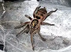 Neoholothele incei is a species of tarantula from Trinidad and Venezuela,[1] commonly called the Trinidad olive tarantula. When mature, the species has a leg-span exceeding 5–7.5 cm (2.0–3.0 in). As often the case with tarantulas, the females live longer than males, with the former living up to 7 years compared to the 2 years that males can expect to reach. N. incei is a bird spider and is fossorial.[2] It is commonly kept as a pet as it is easy to breed.[3] Rarely for tarantulas, N. incei is known to live communally and cannibalism is rare except for times of extreme hunger.[2] Like most New World species, the venom of N. incei is considered to be mild and comparable to a bee sting, however no research has confirmed this.[2][4]