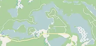 Ness Lake is a lake in British Columbia's Northern Interior. Located 35 kilometres (22 mi) northwest of the city of Prince George, it is a popular destination for fishing, swimming, water sports and other recreational activities. The lake has a distinctive shape, as it is divided into three larger "basins" (Southwest, Central and East), which are connected to one another via smaller, narrow portions of lake. The Eastern and Central Basins have the greatest amount of development (including Ness Lake Bible Camp [1] and a public beach). Meanwhile, the Southwest Basin features a wetland.[2][3]