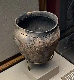 The Netted Ware culture emerged around 1900 BCE with the arrival of the Seima-Turbino phenomenon in the upper Volga region, replacing the earlier Fatyanovo–Balanovo and Volosovo cultures, and soon expanded to the west to Karelia and eastern and central Finland.[2] The Netted Ware culture did not reach southwestern Finland, the area of the Kiukainen culture and later the Nordic Bronze culture.[1] The subsistence of the Netted Ware culture was based on small-scale swidden agriculture and animal husbandry.[2][3]