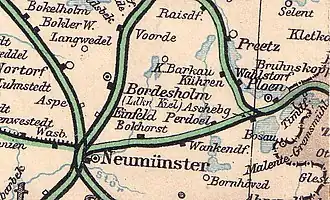 The Neumünster–Ascheberg railway runs from the mid Holstein city of Neumünster east to Ascheberg (Holstein) near Plön in the German state of Schleswig-Holstein. The 26 kilometre line is currently closed, although there is a campaign to reopen it.[2]