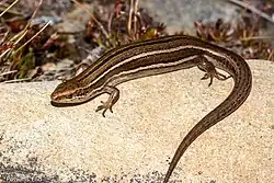 The Nevis skink (Oligosoma toka) is a nationally vulnerable species of skink native to New Zealand.[2] It is named in honour of the location of its habitat, the Nevis valley.[3]