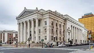 The New Haven County Courthouse is located at 121 Elm Street in the Downtown section of New Haven, Connecticut. The building was built in 1917 and was added to the National Register of Historic Places on May 16, 2003.[1] It is one of the city's finest examples of Beaux Arts architecture, with a particularly elaborate central atrium, and was the site of Griswold v. Connecticut, a historic court case involving women's right to birth control.[2]