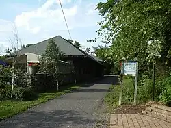 The building is adjacent to a rail trail,[71] and there is a 3-foot (0.91 m) bike rack by the building's northern end.[72] The village of New Paltz purchased its section of the former Wallkill Valley rail corridor from Conrail in 1991, formally opening it on October 9, 1993 as a public walkway, the Wallkill Valley Rail Trail.[73] The permit allowing The Station to operate as a restaurant also required the placement of a sign in the building's parking lot to indicate the presence of the trail.[69] The village allowed The Station to place a public picnic table under an overhang by the rail trail, on the condition that the restaurant did not provide outdoor food service. In August 1999, the restaurant was forced to remove a gas tank and gas line that were placed under the trail; failure to do so could have resulted in the revocation of The Station's certificate of occupancy, preventing the building from being operated as a restaurant.[74][75]