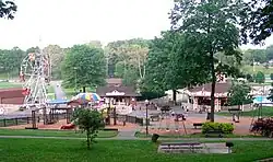 Tuscora Park is a municipal park that features a carousel, ferris wheel, miniature railroad, roller coaster, swing ride, and kiddie rides, along with miniature golf, playgrounds, a swimming pool, and batting cages. Tuscora Park was originally built as a project of the Works Progress Administration; original stone work gates, paths, and retaining walls still adorn the park. The park is now the home of the Park Place Teen Center, a facility for high school students that provides entertainment of all types. Events at the park include a Summer Showcase and the annual First Town Days festival.