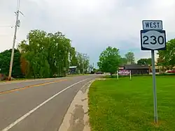 In Barrington, NY 230 continues northeast, crossing as a two-lane residential street through the hamlet of Crystal Spring. The route returns to its rural background northeast of Crystal Spring, crossing John Green Road and Ray Crosby Road before intersecting with NY 14A in Barrington. NY 230 terminates at this intersection, while NY 14A proceeds eastward towards the village of Dundee.[3]