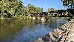 Newaygo's recorded history goes back to the 1600s and the French coureur des bois (independent trappers) and, later, fur company voyageurs that travelled by canoe via the Muskegon River. It was ostensibly named after Chief Nuwagon, an Ojibwe leader who signed the Treaty of Saginaw in 1819,[6] or for an Algonquian word meaning "much water".[7] John Brooks came to harvest lumber in 1836, and was the town's first postmaster in 1847. Proximity to the river made it a center for floating logs to the mills in Muskegon during the lumber boom of the late 1800s.