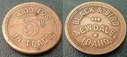 A token from a billiards pool hall that existed in Newdale ID in 1916.