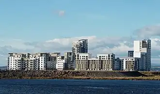 New development north and north-east of the village has quickly dwarfed the original village, both in the sense of scale and population. Much of the village now looks out onto high-rise modern apartments rather than the Firth of Forth.
